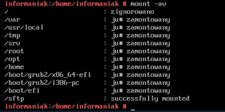 Dysk pomyślnie zamontowany w katalogu /sftp