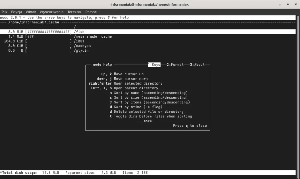 dnf install ncdu #Fedora, CentOS, Rocky LinuxPo instalacji możliwe jest użycie programu z linii poleceń